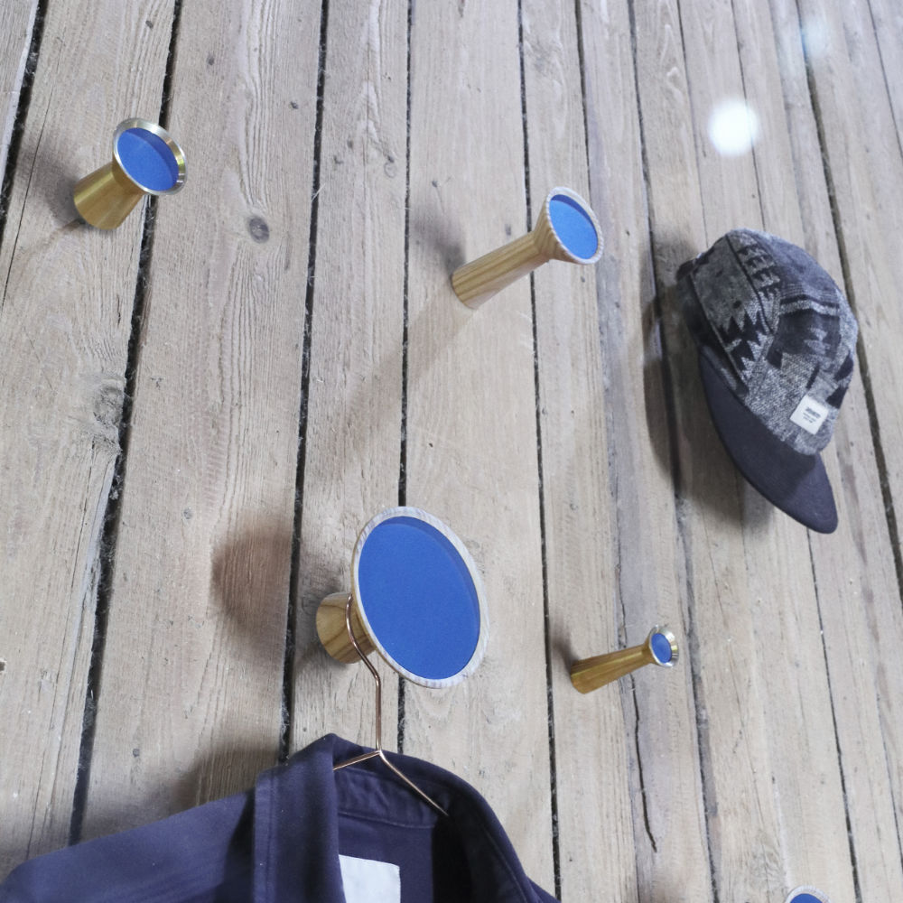 Pluugs sind eine Reihe von Wandhaken. Jeder Haken hat unterschiedliche Dimensionen und es gibt sie in Eschenholz, Messing oder Edelstahl. Dadurch und mit den abgestimmten Farbvarianten des Linoleuminlets entstehen nahezu unendliche Möglichkeiten, um viel