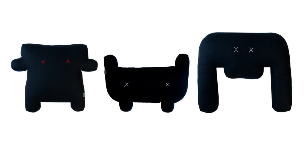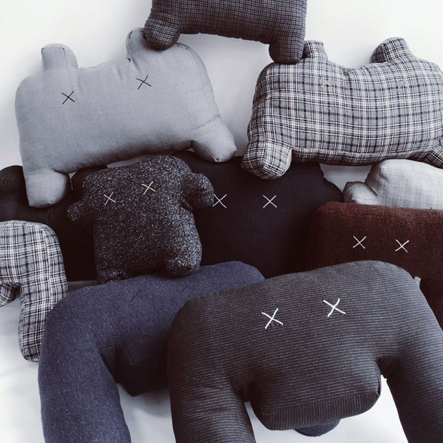 Wenn die drei sich treffen, wird es so richtig gemütlich, denn zusammengesteckt formen sie eine weiche Liegefläche. Jedes Teil wird aus Stoffrestposten einzeln auf Kundenwunsch angefertigt in ist in seiner Art ein