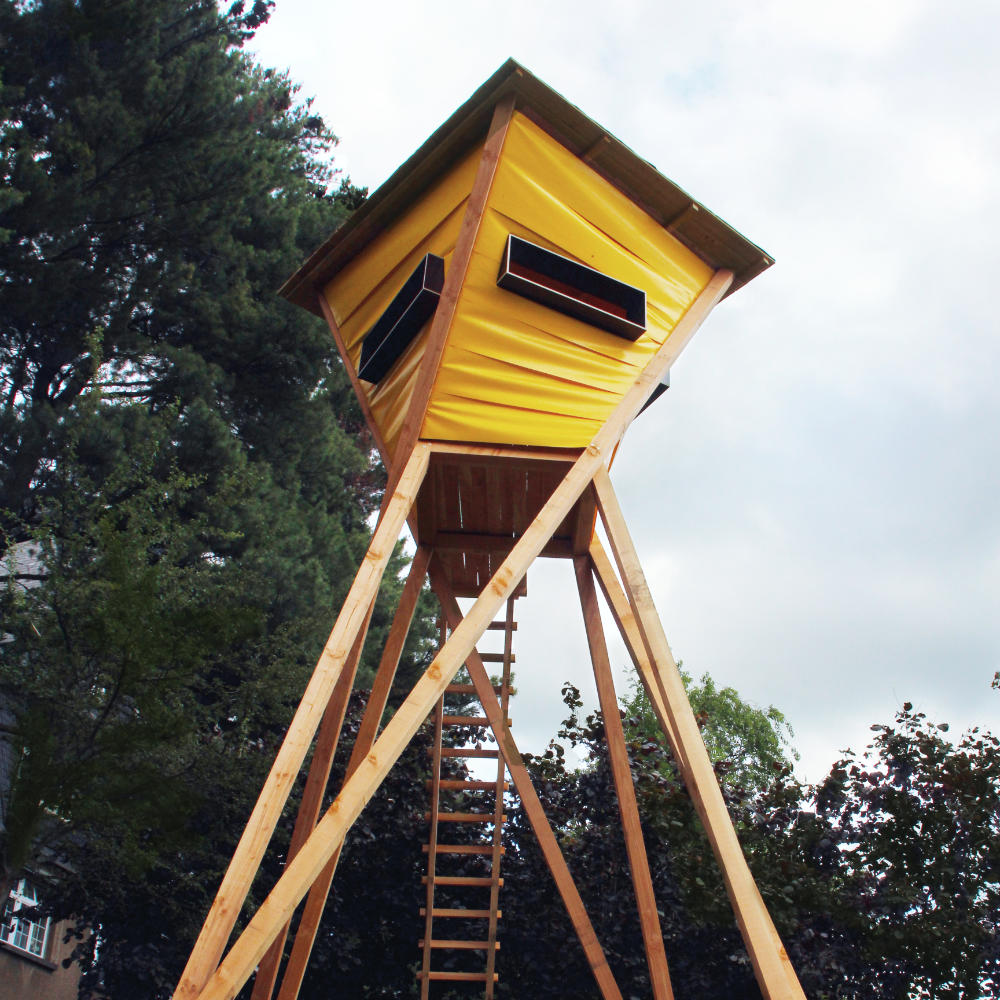 Twisted Peek bedeutet so viel wie „gedrehter Späher“. Die unkonventionelle Jagdkanzel steht mit ihrer außergewöhnlichen Formensprache und Konstruktion im